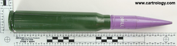| Projectile | steel, aluminum windscreen, lilac, 1 iron driving band Projectile Markings: (white ink) DRILL |